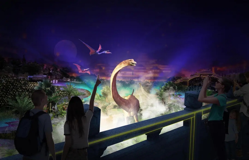自贡,也被誉为“恐龙之乡”,本届灯会在“好看”上再次创新,利用园中河谷地势环境,巧妙融合自贡特色仿真恐龙、自贡彩灯和前沿AI科技,完美再现史前侏罗纪恐龙谷。谷中,还有一组“穿越”到侏罗纪的“恐龙战队”,通过先进的视觉识别、多感知交互以及高精度声源定位等技术与游客亲切互动。